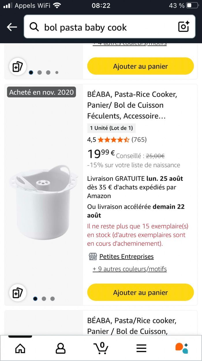 Bol de cuisson féculents baby cook