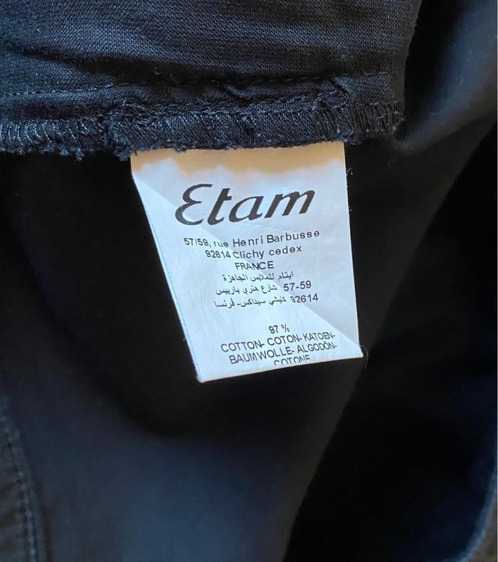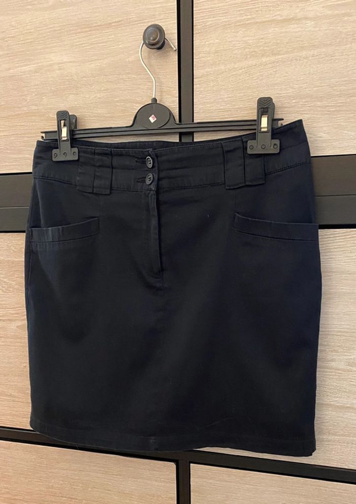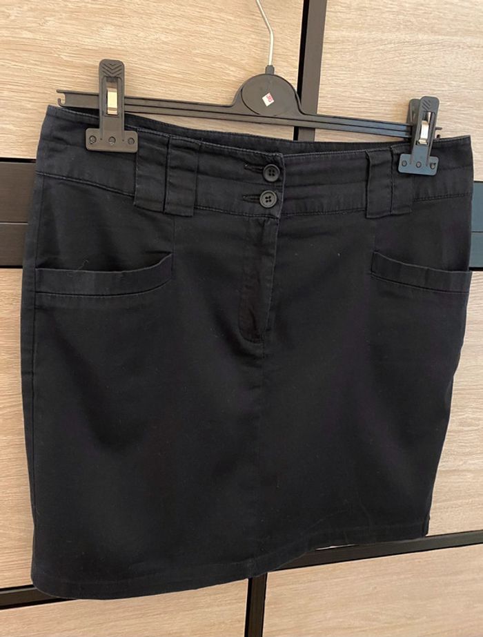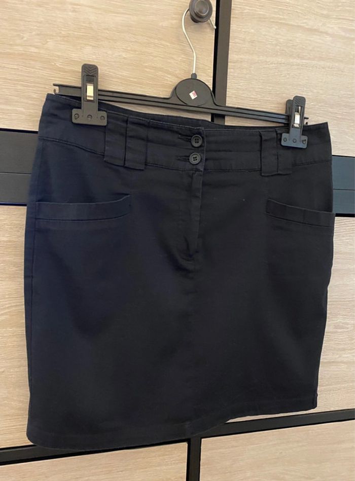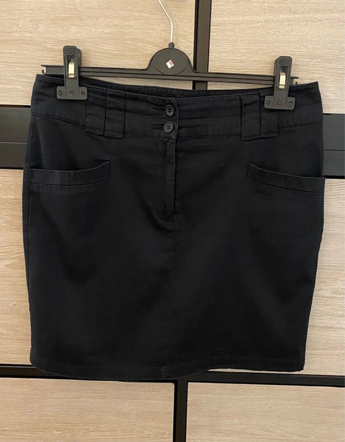 Jupe noire Etam Taille 38 Simple et agréable à porter 2 poches avant Se ferme par fermeture éclair et boutons Passants pour mettre une ceinture si envie Longueur 44 cm