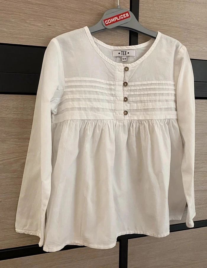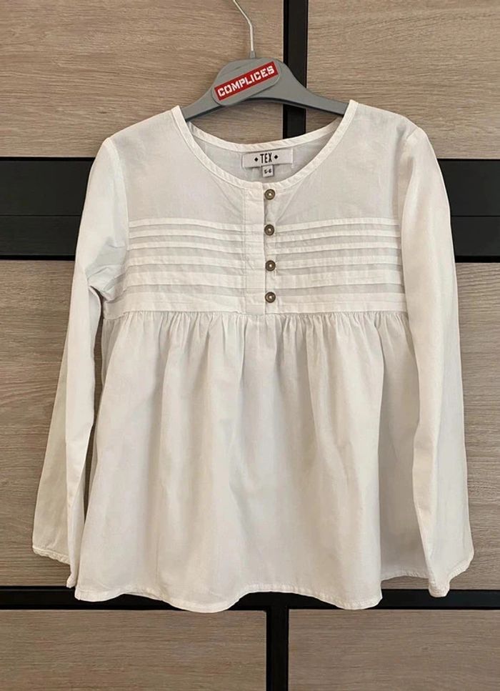 très jolie blouse blanche Tex taille 5/6 ans excellent état !! elle est agréable à porter, peut se porter aussi bien seule sur un pantalon ou une jupe ou même sous un pull :) #magguy75_5ans #magguy75_6ans