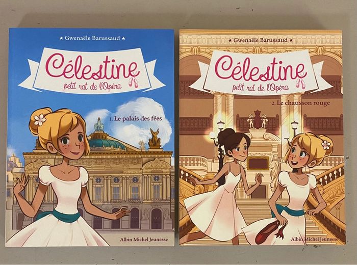 Lot de 2 livres de la collection : Célestine petit rat de l’Opéra - le palais des fées - le chausson rouge Très beaux livres, avec de très belles illustrations couleurs. Découvrez les aventures de Célestine qui rêve d’intégrer l’Opera de Paris ! L’histoire se passe en 1900 et est tirée d’une histoire vraie Marques pages personnage de Célestine intégrés dans chacun des livres !