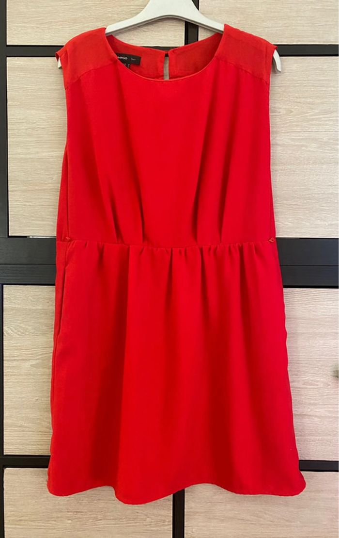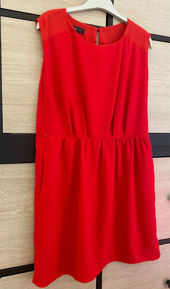 Très belle robe Mango Taille M correspond à un 38 Taille élastique, 2 petites poches, doublure robe Attache dans le dos, passant ceinture si vous souhaitez en mettre une.