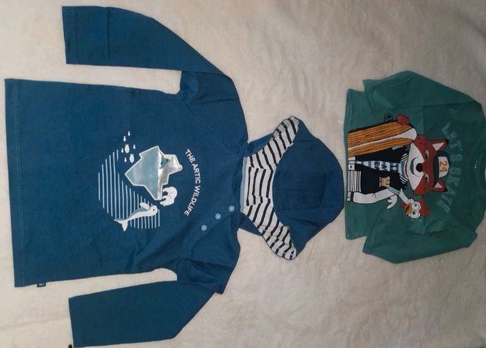 🦊🌊 Lot de 2 tee-shirts manches longues – 36 mois / 3 ans Parfaits pour la mi-saison ! ✅ 1 bleu façon sweat léger à capuche, motif océan – Obaïbi ✅ 1 bleu motif renard – C&A 🆕 Jamais portés 🏠 Maison non fumeur Confortables, doux, avec des motifs adorables – prêts pour de nouvelles aventures ! 🌟 📦 Envoi rapide et soigné #Obaibi #CA #TeeShirtML #SweatLéger
