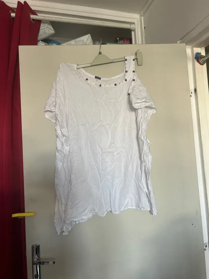T-shirt blanc, taille M/L avec manches Il y a des taches jaunes voir photo