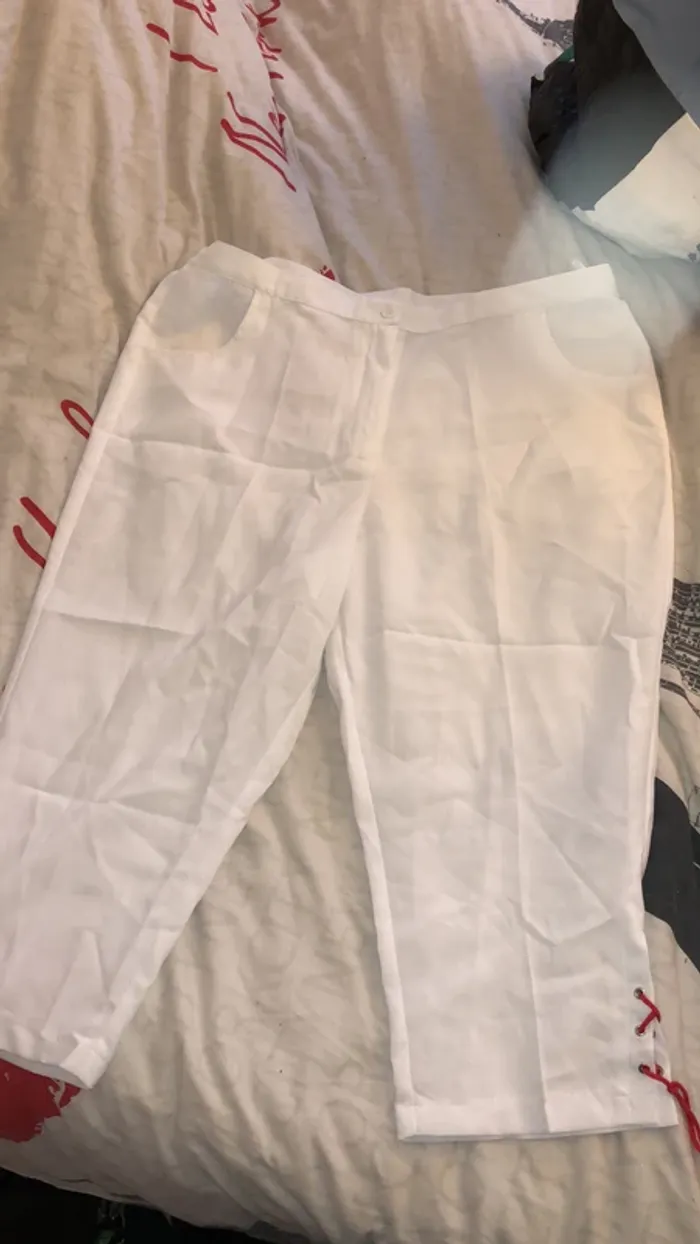 Pantalon court blanc avec ficelle rouge sur les côtés très bon état