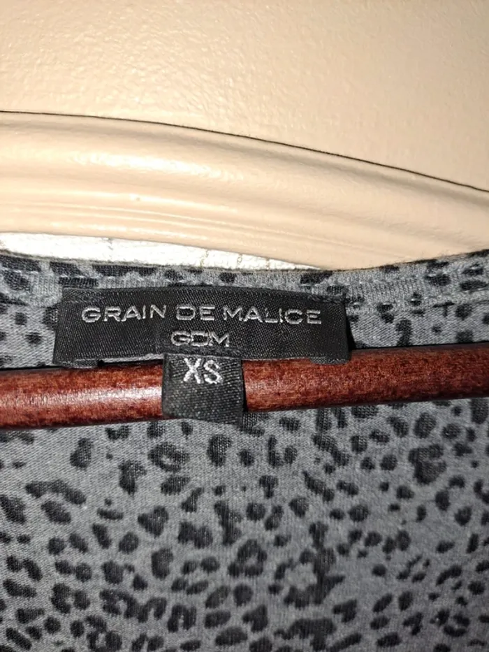 Superbe haut gris léopard femme resserré taille grain de malice XS comme neuf