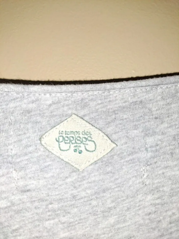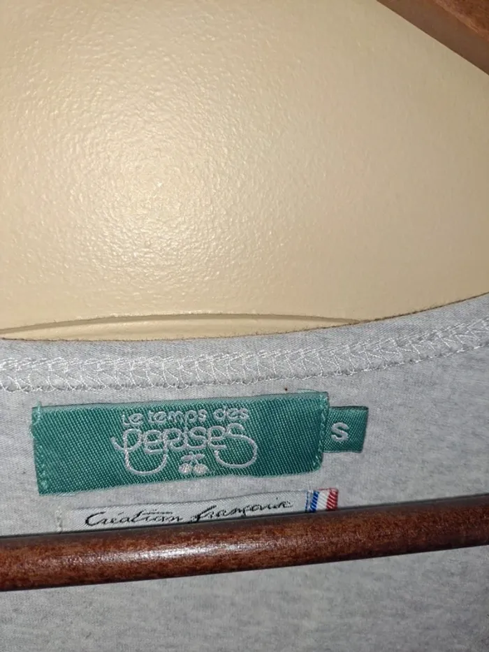 T-shirt femme le temps des cerises 🍒 S comme neuf écriture used effet craquelé vendu ainsi gris - photo numéro 7