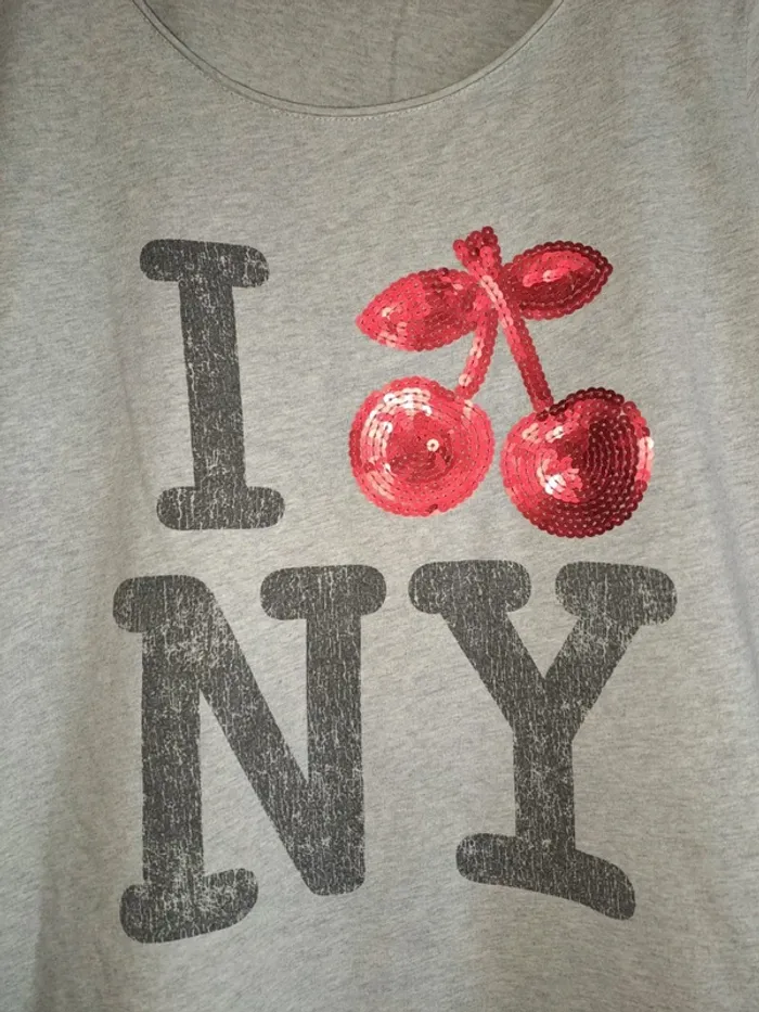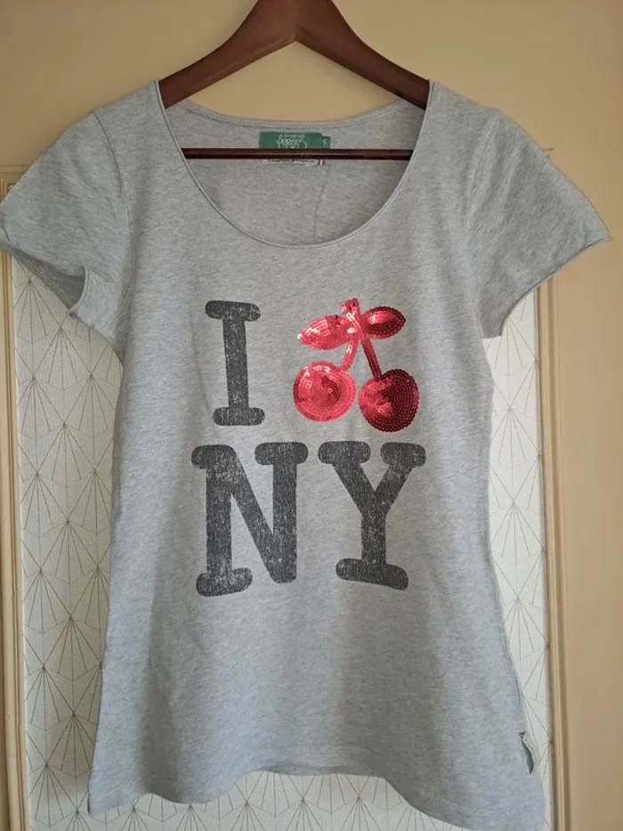 T-shirt femme le temps des cerises 🍒 S comme neuf écriture used effet craquelé vendu ainsi gris - photo numéro 1