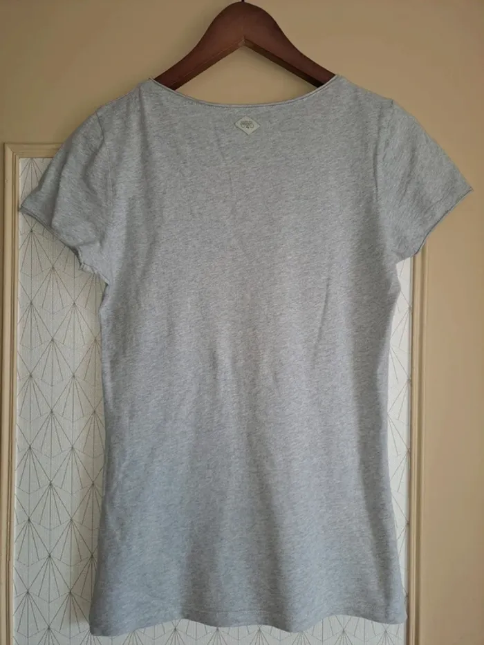 T-shirt femme le temps des cerises 🍒 S comme neuf écriture used effet craquelé vendu ainsi gris - photo numéro 3