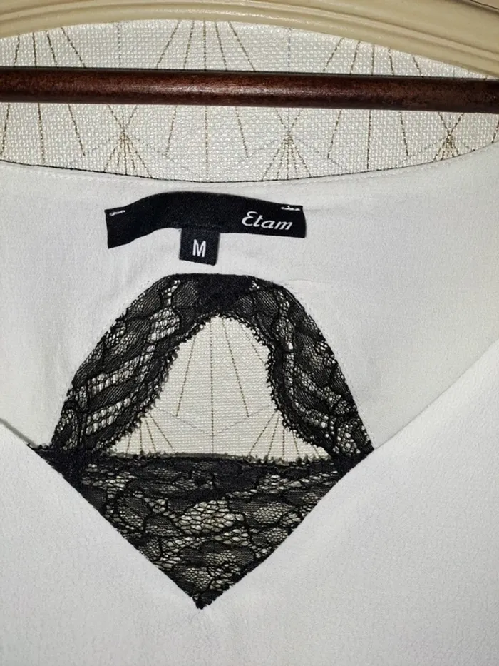 Jolie blouse femme etam M tbe noir et blanche sexy tbe 1 micro trou réparé - photo numéro 4