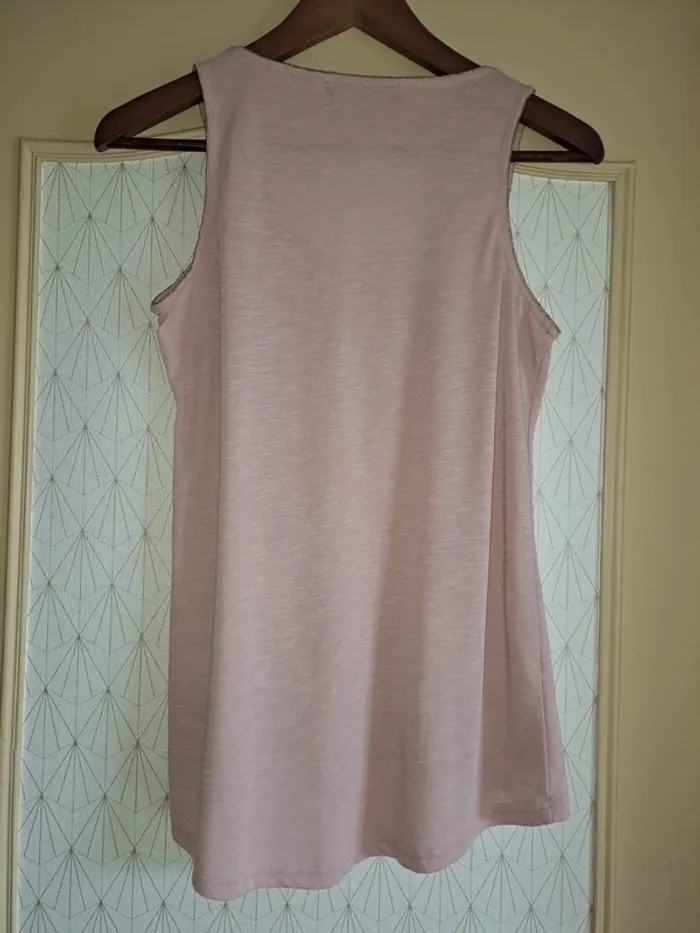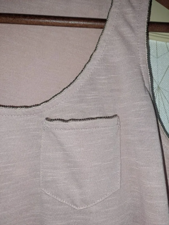 Débardeur T1 femme rose pâle cache cache avec décors 1 fond de tâche qu'on ne voit vraiment pas dvt - photo numéro 1