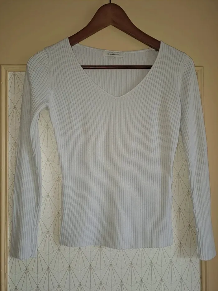 Haut femme blanc cache cache S tbe - photo numéro 1