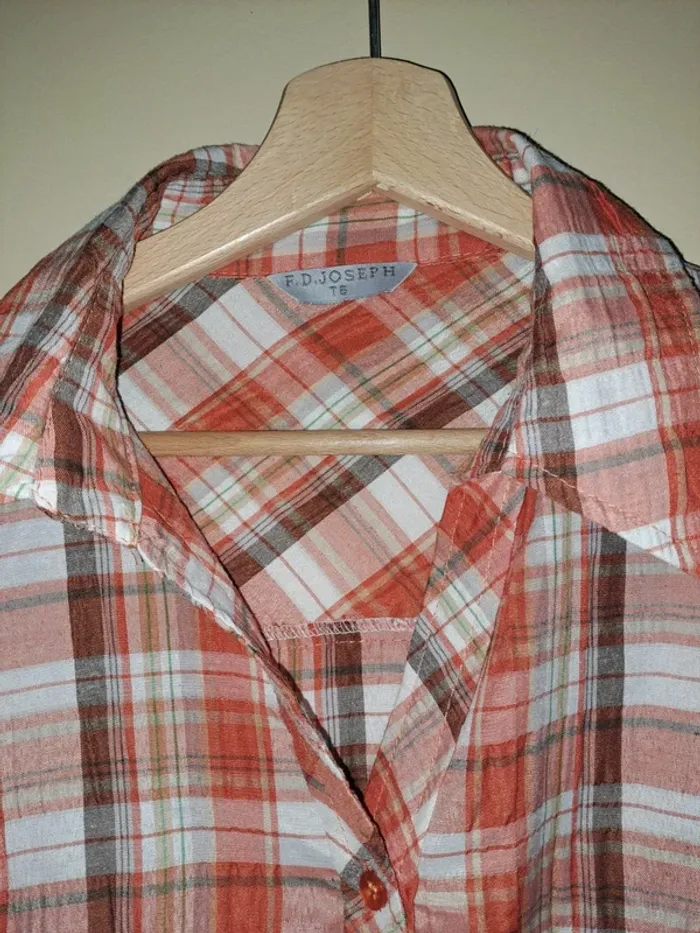 Chemise à carreaux femme oranger tbe comme neuve FD Joseph T5 50/52 - photo numéro 6