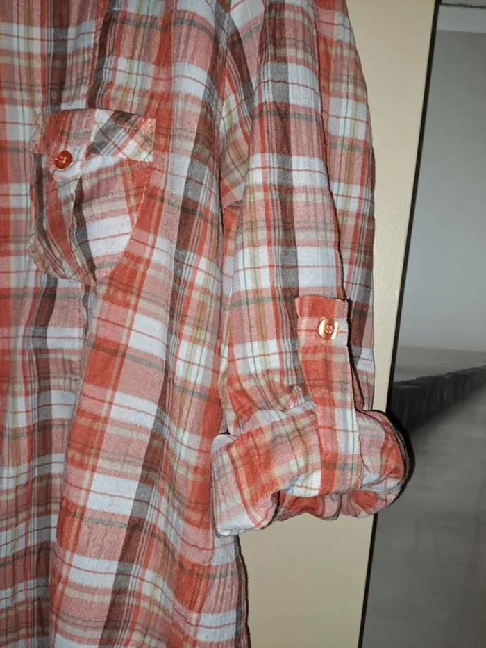 Chemise à carreaux femme oranger tbe comme neuve FD Joseph T5 50/52 - photo numéro 5