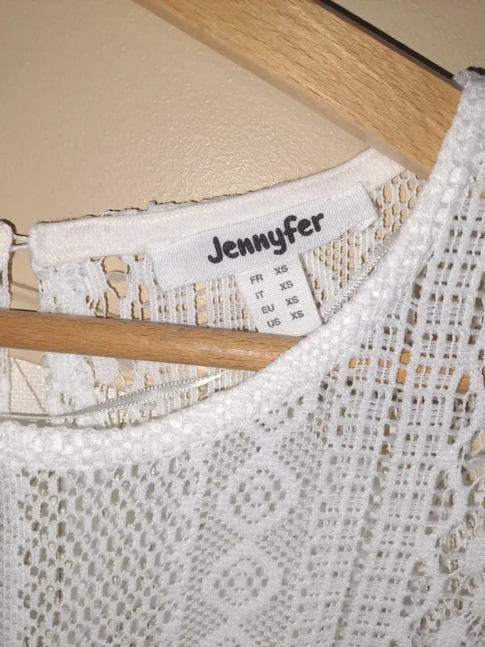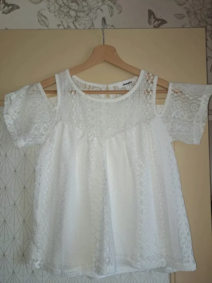 Haut blanc femme doublé dentelle ajourée Jennyfer XS Tbe épaules dénudées - photo numéro 1