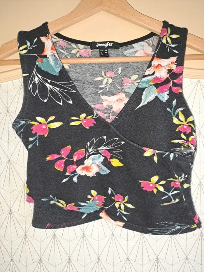 Top femme court noir fleuri tbe Jennyfer XS - photo numéro 1