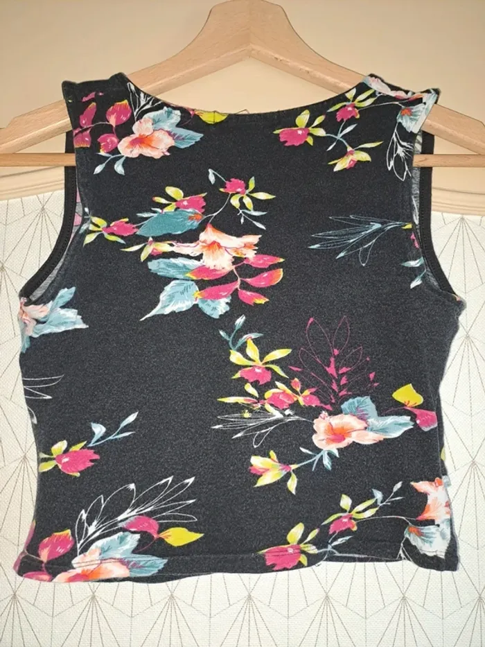 Top femme court noir fleuri tbe Jennyfer XS - photo numéro 3