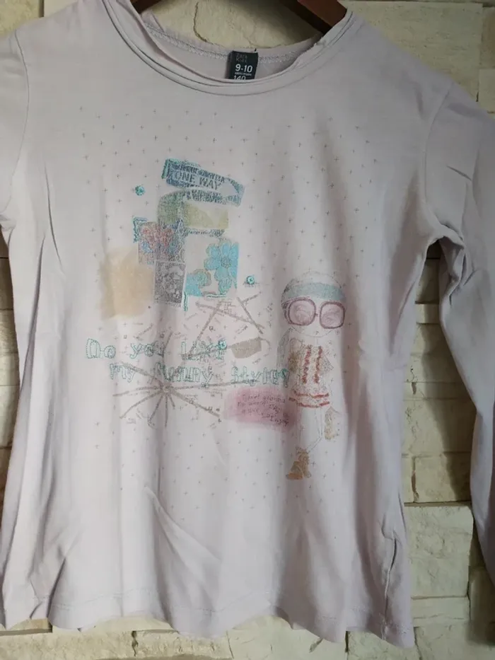 T-shirt zara fille rose pâle 9/10 ans tbe - photo numéro 4