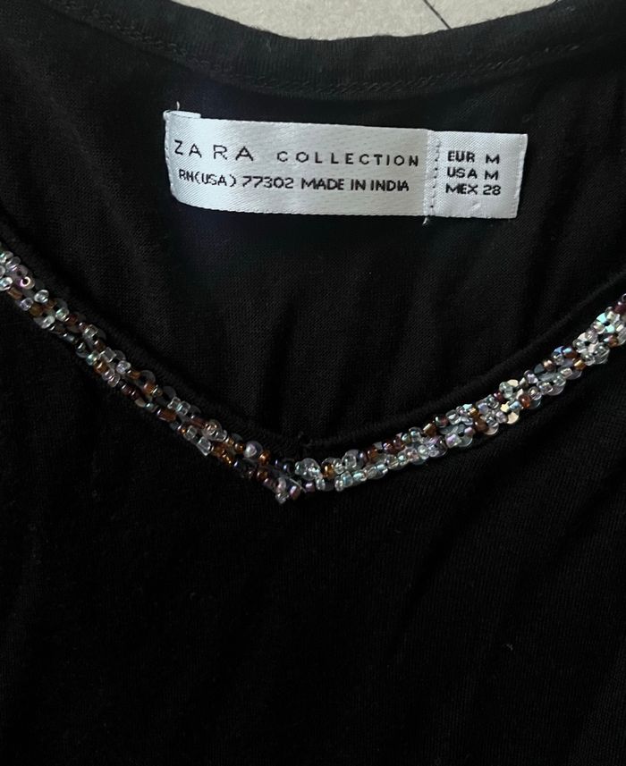 Robe Zara collection Taille M Robe fine bretelles Contour perles et le bas à sequins 100 % viscose Coloris noir Perles colorées 📩Je réponds rapidement aux messages 📦Envoi rapide et soigné