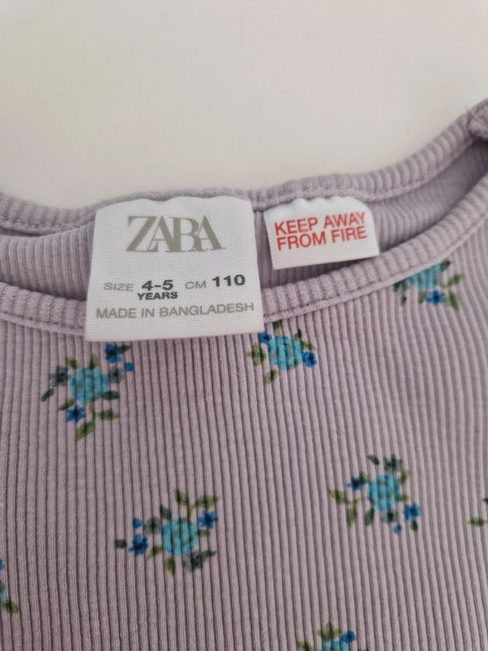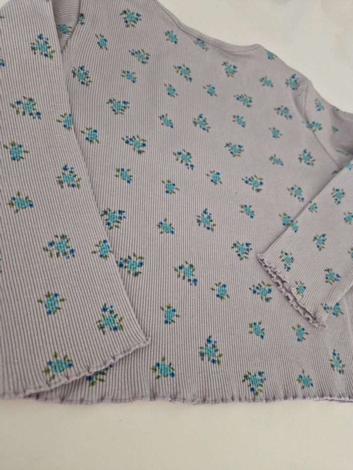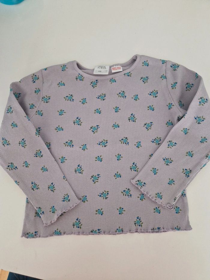 T-shirt à manches longues pour fille Taille 4 /5 ans Acheté à Zara Côtelé Coloris lilas avec motifs petites fleurs 🌸 bleues