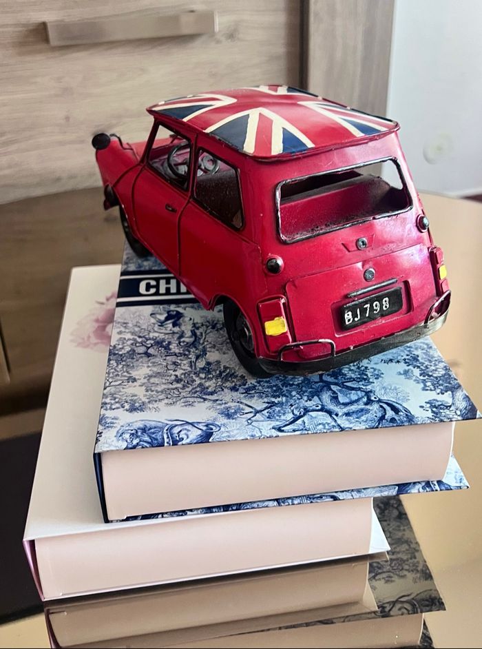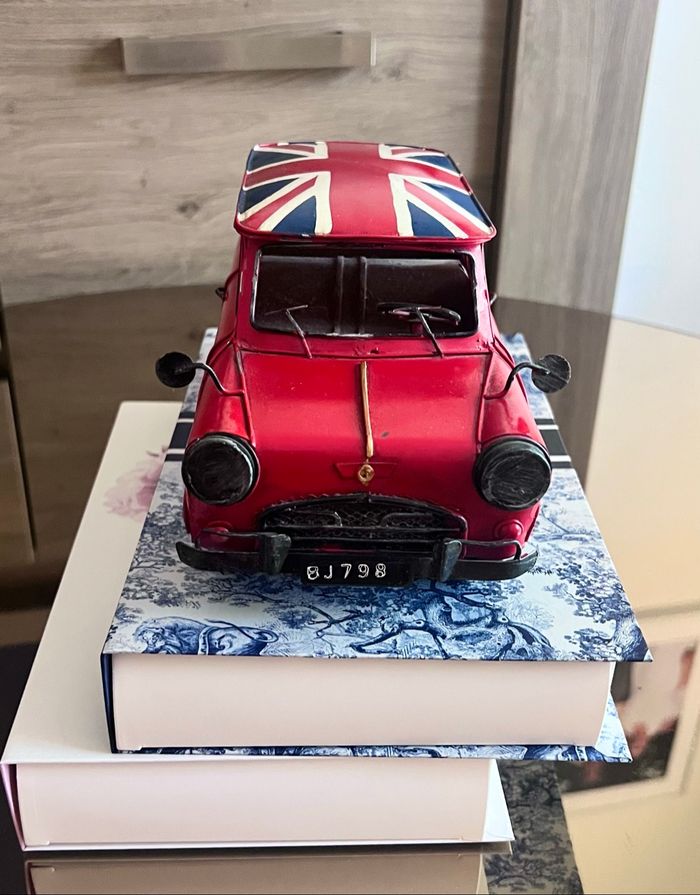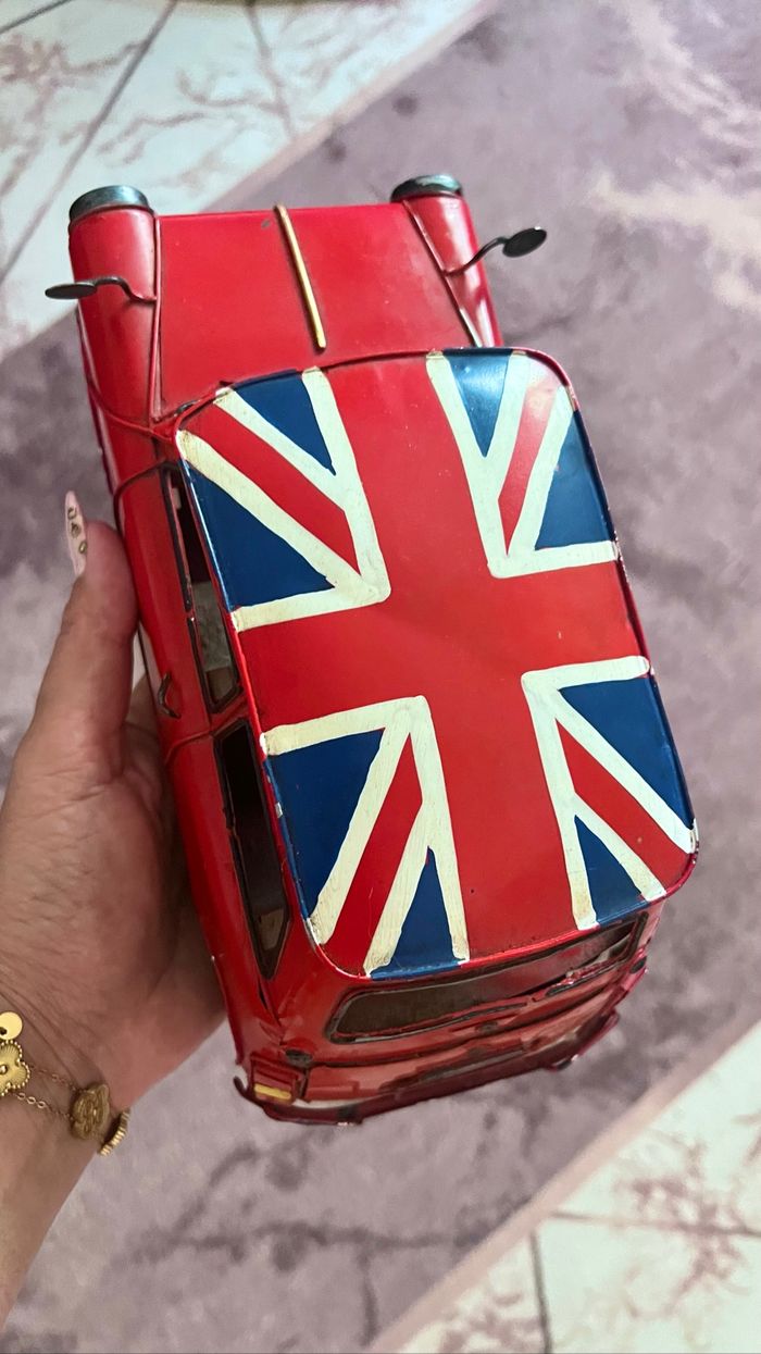 Voiture en métal lourd de qualité Très belle voiture de décoration Elle roule parfaitement Drapeau Anglais sur la toiture Coloris rouge et couleurs du drapeau anglais 24 cm de longueur 11 cm de hauteur 11 cm de largeur 📩Je réponds rapidement aux messages 📦Envoi rapide et soigné