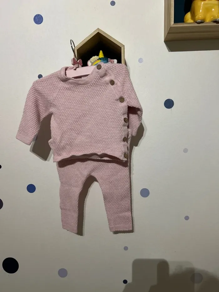 Ensemble rose haut et pantalon coton 2-4mois