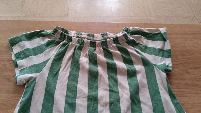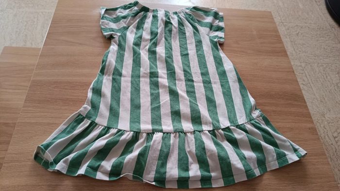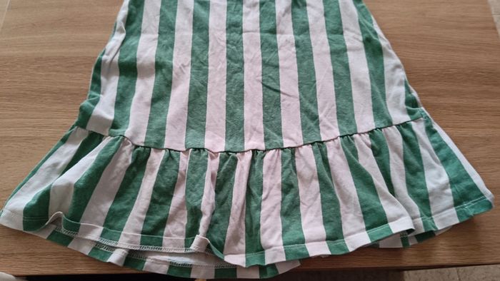 Robe rayé Verte et blanche Rayures verticales Évasé dans le bas Taille 5 ans #robe #robeevase #verte #blanche #fille #5ans #marylene025fille5ans