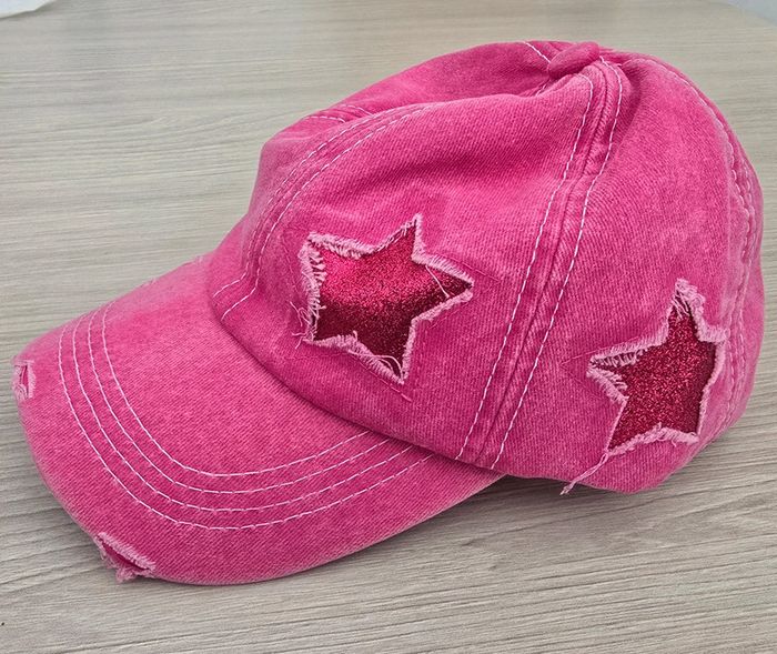 Casquette fille rose foncé motifs étoiles. Neuve et emballée. Convient de 8 à 12 ans.