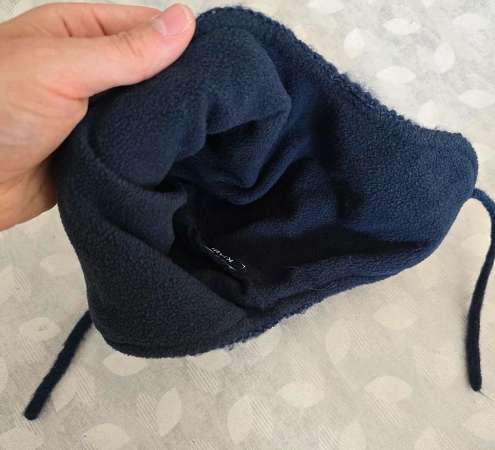 Bonnet Kiabi, bleu marine. Convient de 18 à 24 mois. Très bon état. Extérieur effet laine intérieur matière douce et chaude style polaire.