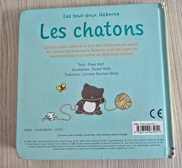 Livre tactile pour bébé, les chatons. Collections les tout-doux Usborne. Très bon état