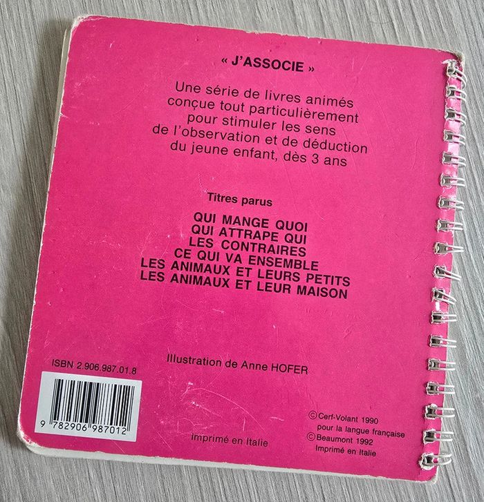 Livre bébé j'associe les animaux et leurs petits. Très bon état. livre vintage