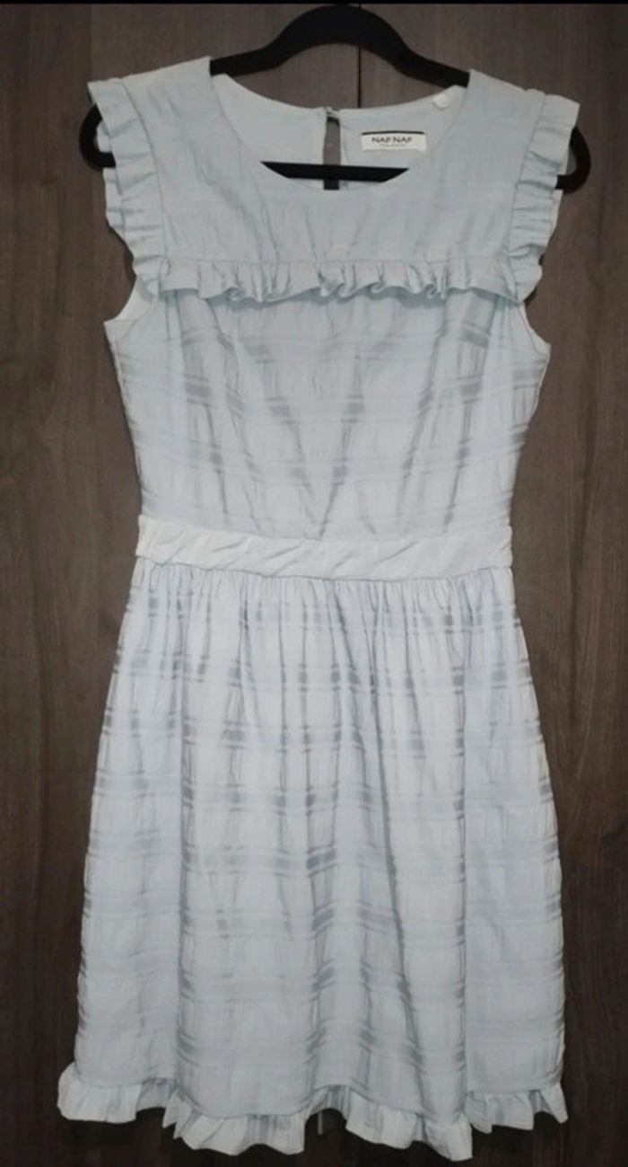 Superbe robe Naf Naf bleu ciel. Taille 38. Double jupon, fermeture dans le dos. Parfait état