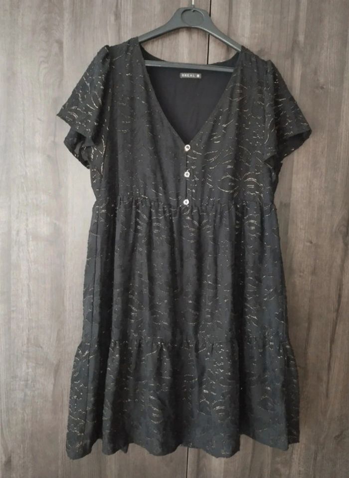 Robe noire à liserés dorés Breal taille 40. Très bon état.