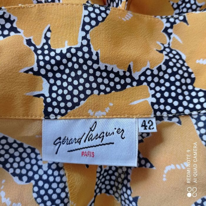 Polyester. Mesures prises à plat : épaules : 37cm, aisselles : 51cm, longueur : 61cm. Blazer blouse. Gérard Pasquier. C17