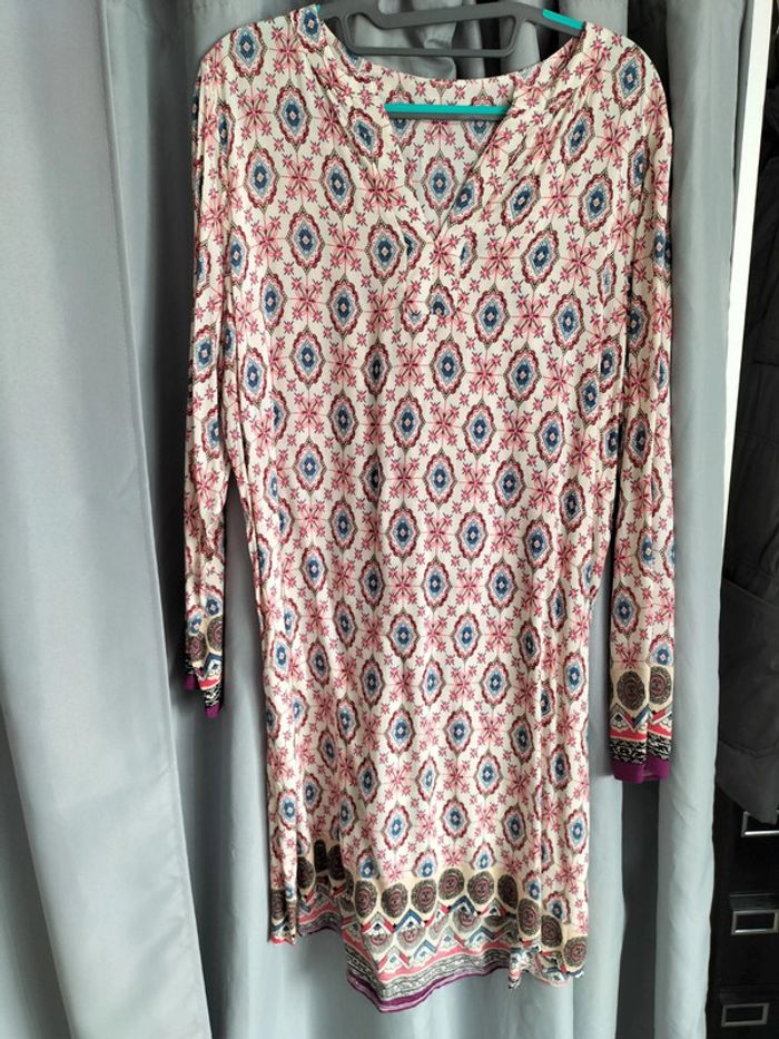 Robe manches longues pouvant être remontées par boutons sur avant bras. Longueur 90 cm, largeur aisselle à aisselle 53 cm. Parfait état
