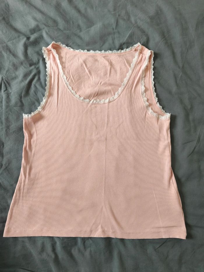 Top femme taille 40/42 mais taille grand . Longueur 62 cm largeur aisselle à aisselle 48 cm. Porté mais pas de défaut.
