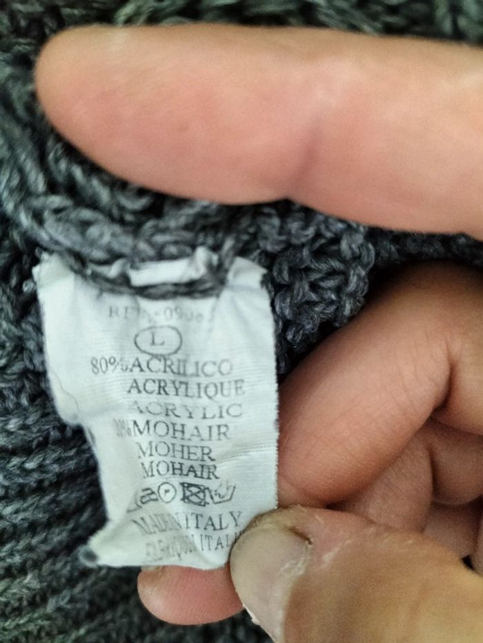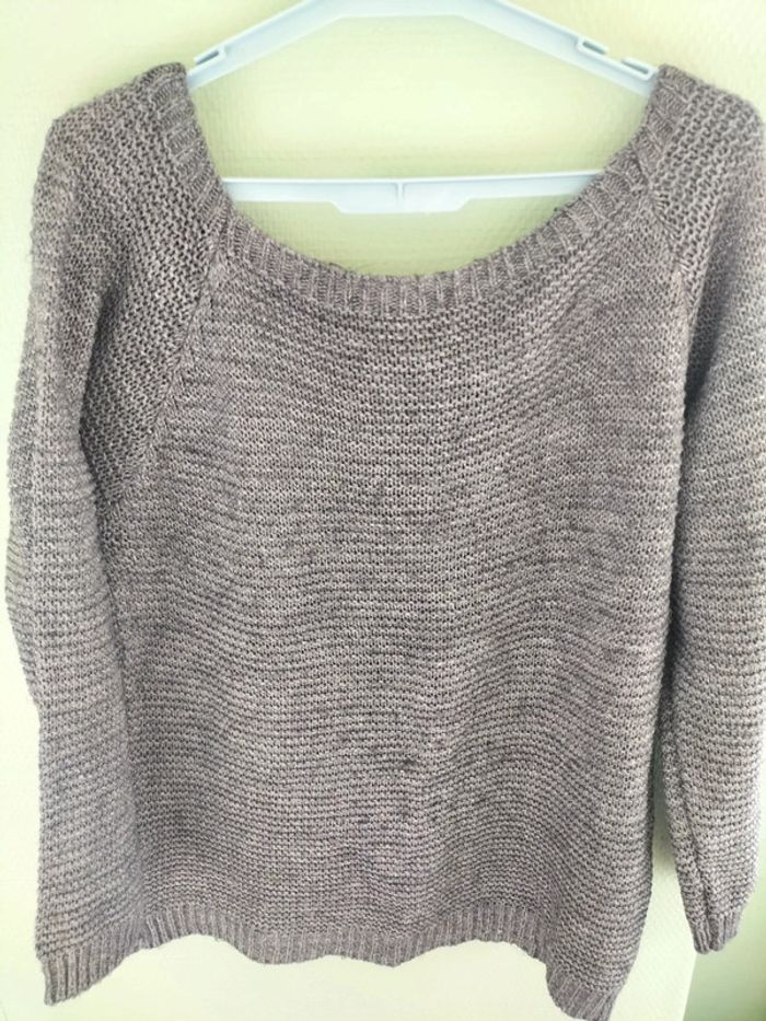 Pull fin femme Taille L, gris chiné, à nouer derrière. Longueur 64 cm et largeur aisselle à aisselle 50 cm. Porté mais en bon état