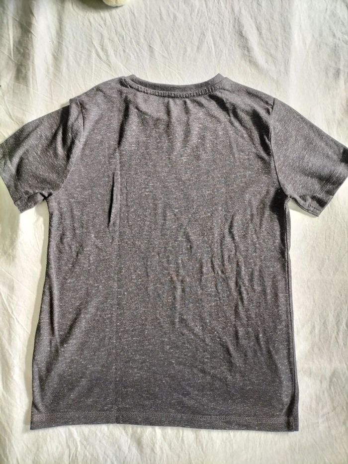 Tee-shirt manches courtes garçon 10 ans, gris chiné. Longueur 54 cm et largeur aisselle à aisselle 38 cm. Très bon état