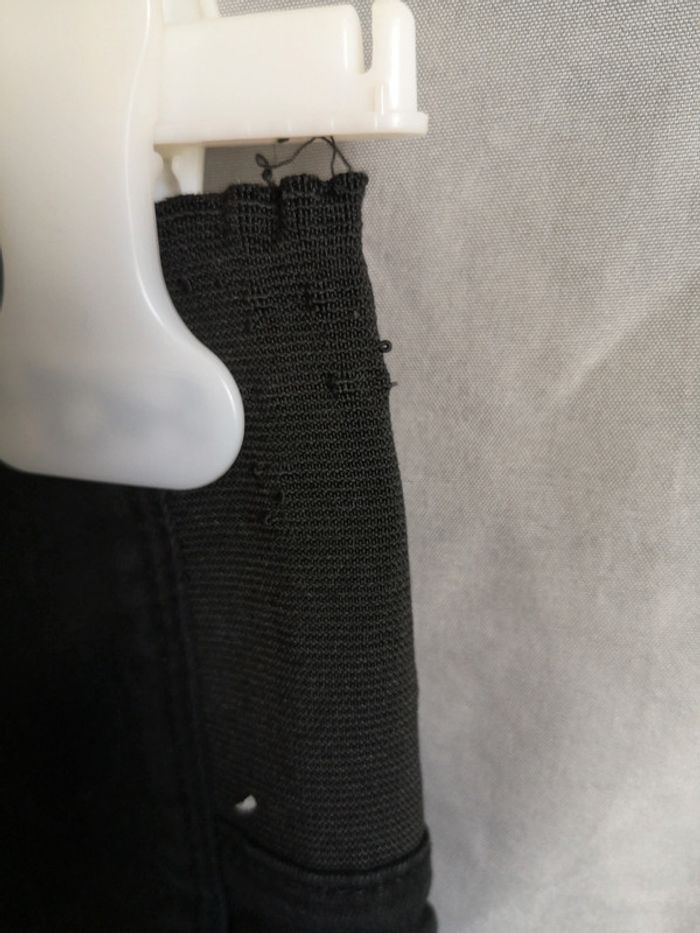 Pantalon moulant taille 40 slim, taille élastique, très bon état SAUF quelques petits fils tirés sur l'élastique (voir photo) , noir