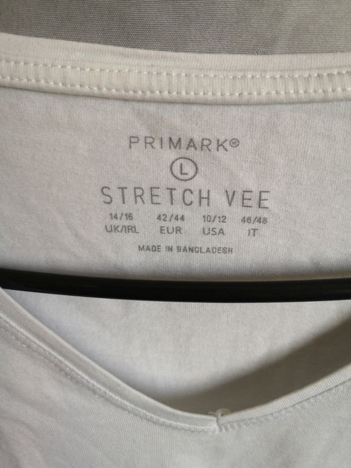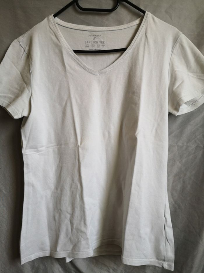 Tee-shirt manches courtes femme taille 42/44, primark, largeur aisselle à aisselle 50 cm et longueur 62 cm, blanc, excellent état