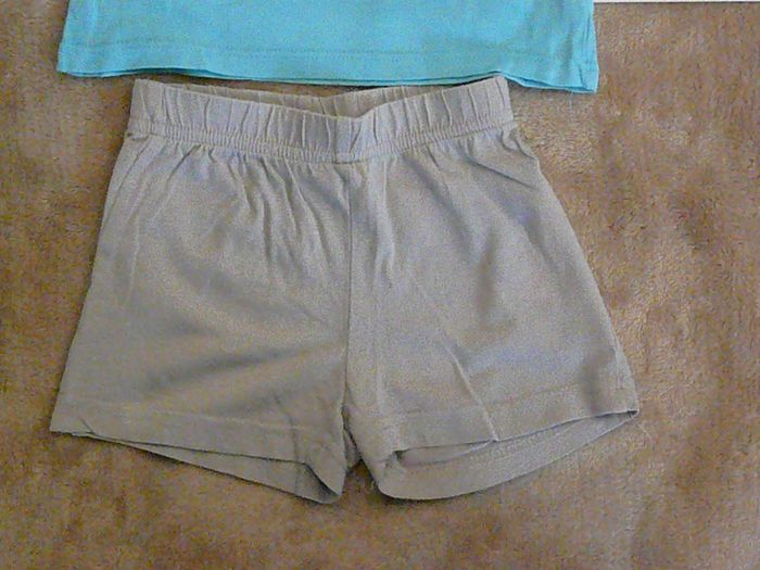 Ensemble composé de : - Un short beige, - Un débardeur turquoise assorti. Très bon état. N’hésitez pas à regarder mes autres annonces pour réduire les frais de port.