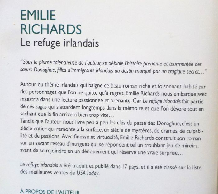 LE REFUGE IRLANDAIS de Emilie RICHARDS Ed. Mira - Harlequin Bon état Résumé en photo n°2