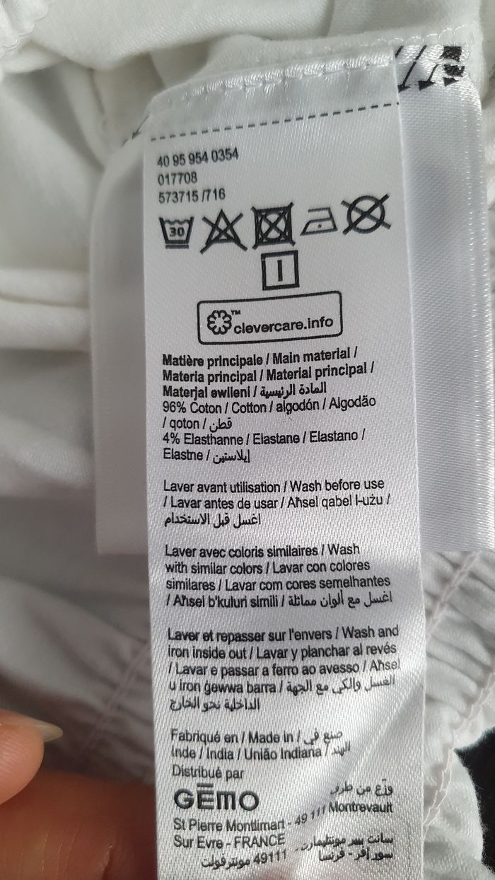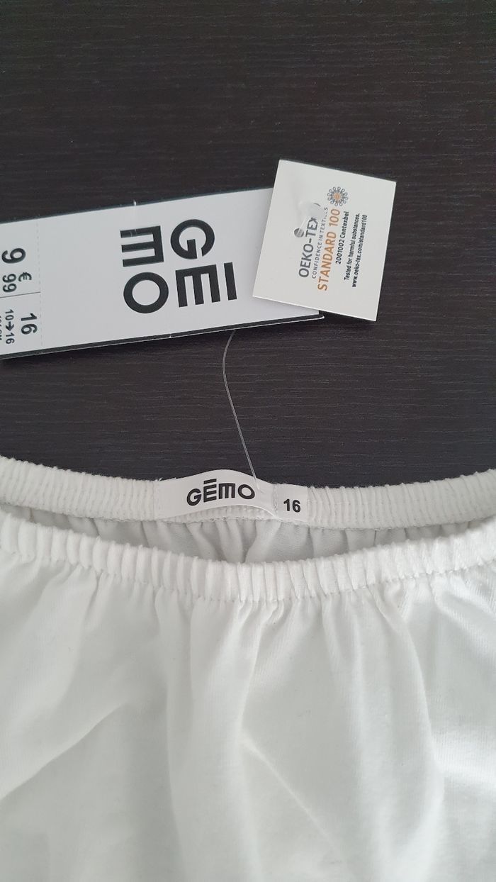 Je vends ce haut blanc en coton de la marque Gemo, taille 16 ans. - Type de produit : Haut - Marque : Gemo - Taille : 16 ans - Couleur : Blanc - Matière : 96% Coton, 4% Élasthanne N'hésitez pas à me contacter pour plus d'informations ou de photos.