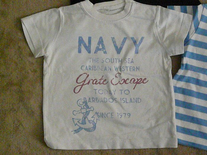 Ensemble composé de : - Un tee-shirt à rayures bleu et blanc, - Un tee-shirt noir Bali, - Un tee-shirt blanc à motif. Très bon état. N’hésitez pas à regarder mes autres annonces pour réduire les frais de port.