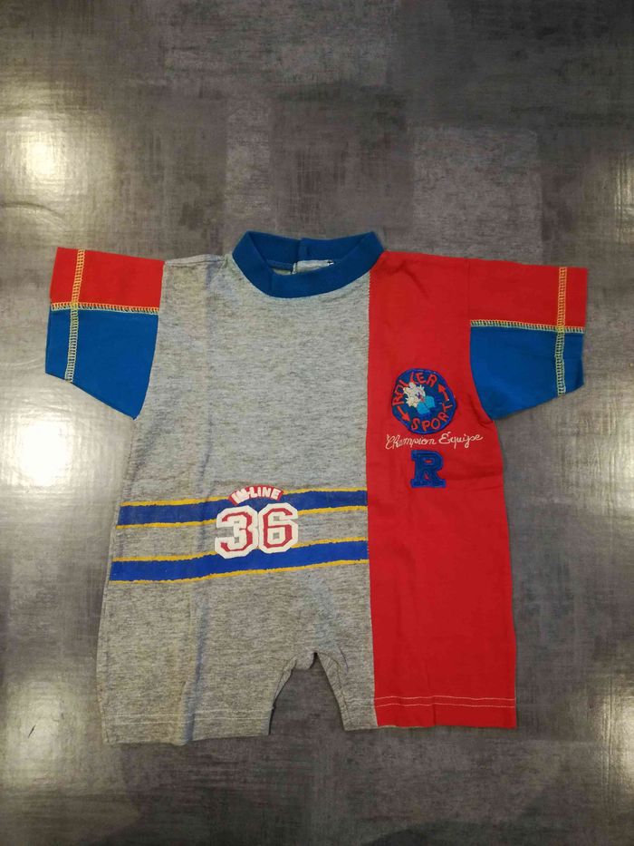 Combi-short bébé grise, rouge et bleue. Taille 3 mois