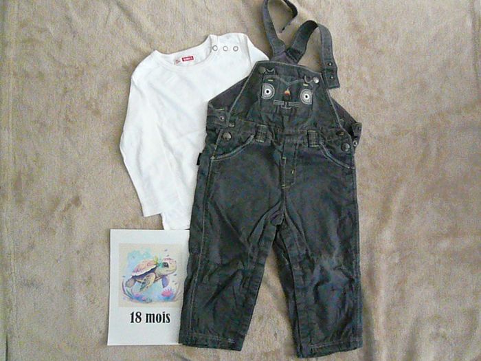 Ensemble Marque Du Pareil au même composé de : - Une salopette grise doublée – avec pressions à l’entrejambe et bretelles réglables, - Un tee-shirt blanc assorti – avec boutons pressions à l’épaule. Très bon état. N’hésitez pas à regarder mes autres annonces pour réduire les frais de port.
