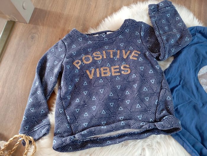 Idéal pour la rentrée scolaire ! A porter ensemble ou séparément comprenant un jegging (mélange de jean et de legging jogging) marque tommy Hilfiger avec bande élastique sans bouton ultra pratique pour s habiller Un pull Kiabi positives vibes écriture doré Et un t-shirt la redoute manche longue avec coeur argenté effet paillettes #tommyhilfiger #kiabi #laredoute #izianacinqans