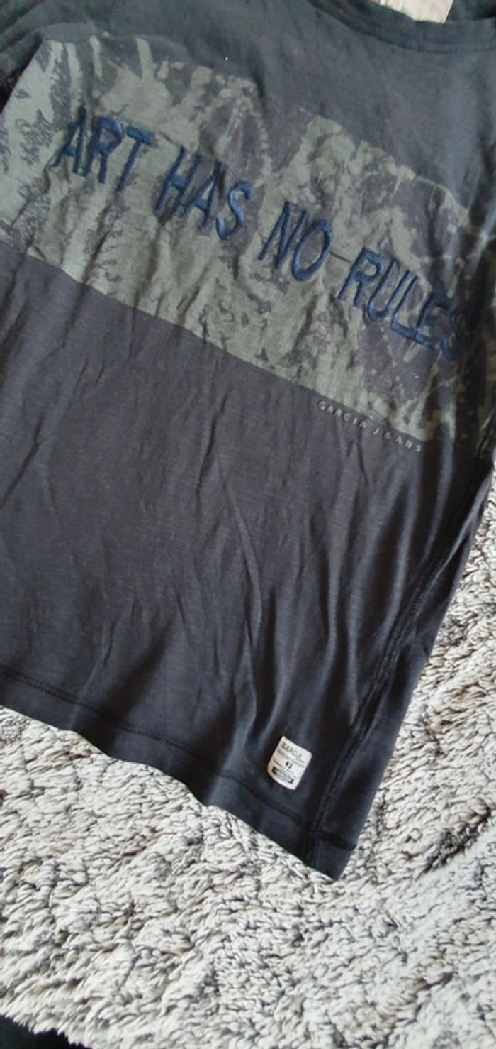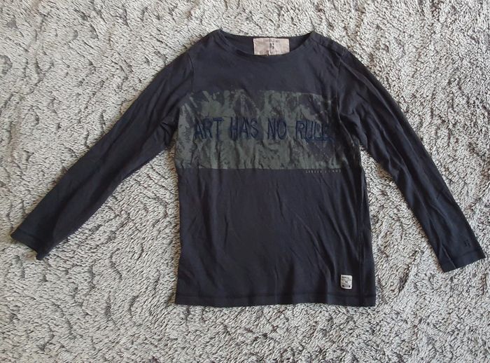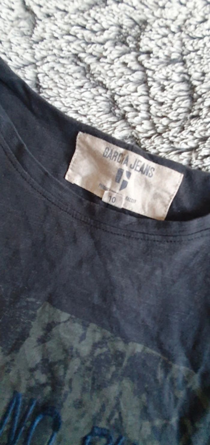 Tee-shirt manches longues, couleur noir, motifs sur le devant , en bon état, de la marque Garcia - taille 10 ans (taille grand) #cath_moi10ansgarçon D'autres modèles et marques disponibles pour garçon du prématuré au 12 ans et pour fille du naissance au 8 ans dont Timberland, Bout'chou, Zara, Jacadi, Tape à l'œil, Okaidi, DKNY, Monoprix....