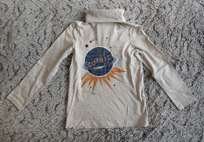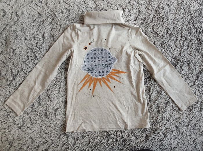 Tee-shirt épais manches longues avec col roulé, couleur beige avec motif espace 🪐 avec sequins sur le devant, de la marque Sergent Major, neuf (jamais porté juste lavé) - taille 10 ans #cath_moi10ansgarçon D'autres modèles et marques disponibles pour garçon du prématuré au 12 ans et pour fille du naissance au 8 ans dont Timberland, Bout'chou, Zara, Jacadi, Tape à l'œil, Okaidi, DKNY, Monoprix....