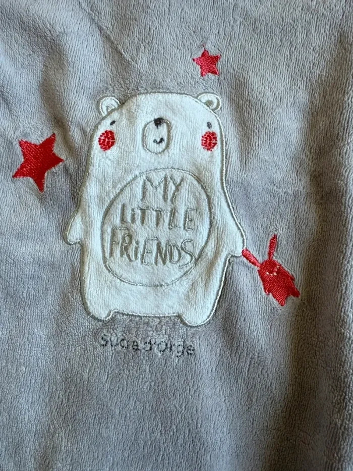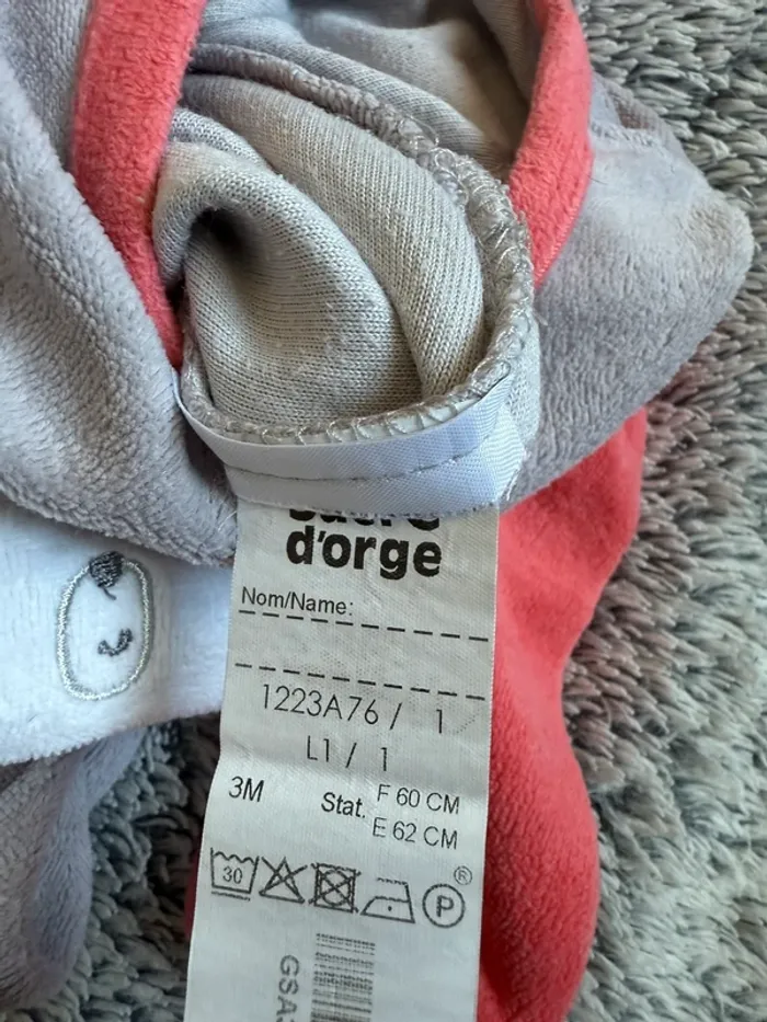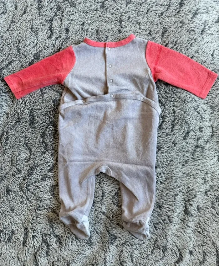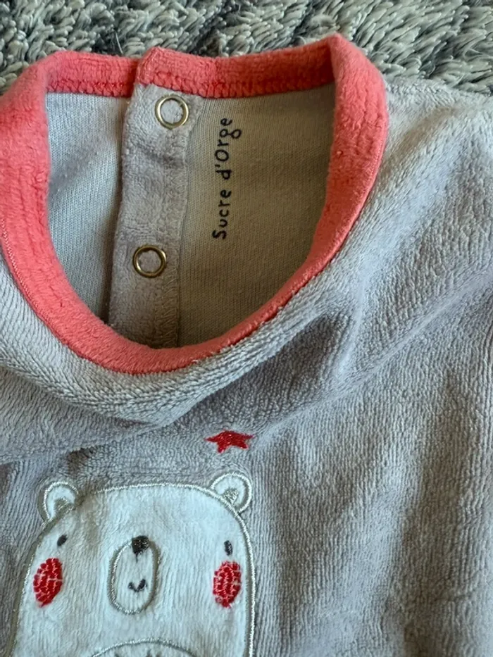 Pyjamas en velours bébé fille un des boutons pression est un peu déchiré mais il tiens toujours #cath_moi3moisfille D'autres modèles et marques disponibles pour garçon du prématuré au 12 ans et pour fille du naissance au 8 ans dont Timberland, Bout'chou, Zara, Jacadi, Tape à l'œil, Okaidi, DKNY, Monoprix....