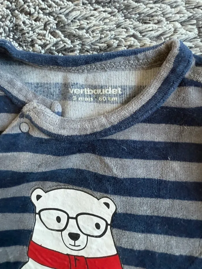 Pyjamas bébé garçon en excellent état,en velours, s’ouvre devant et entre les jambes pour faciliter l’habillage, idéal pyjamas de noël, de la marque Verbaudet - taille 3 mois #cath_moi3moisgarçon D'autres vêtements et chaussures de marques disponibles pour garçon du prématuré au 12 ans et pour fille du naissance au 8 ans dont Timberland, Bout'chou, Zara, Jacadi, Tape à l'œil, Okaidi, DKNY, Monoprix… #noel #noel2025 #cadeaudenoel